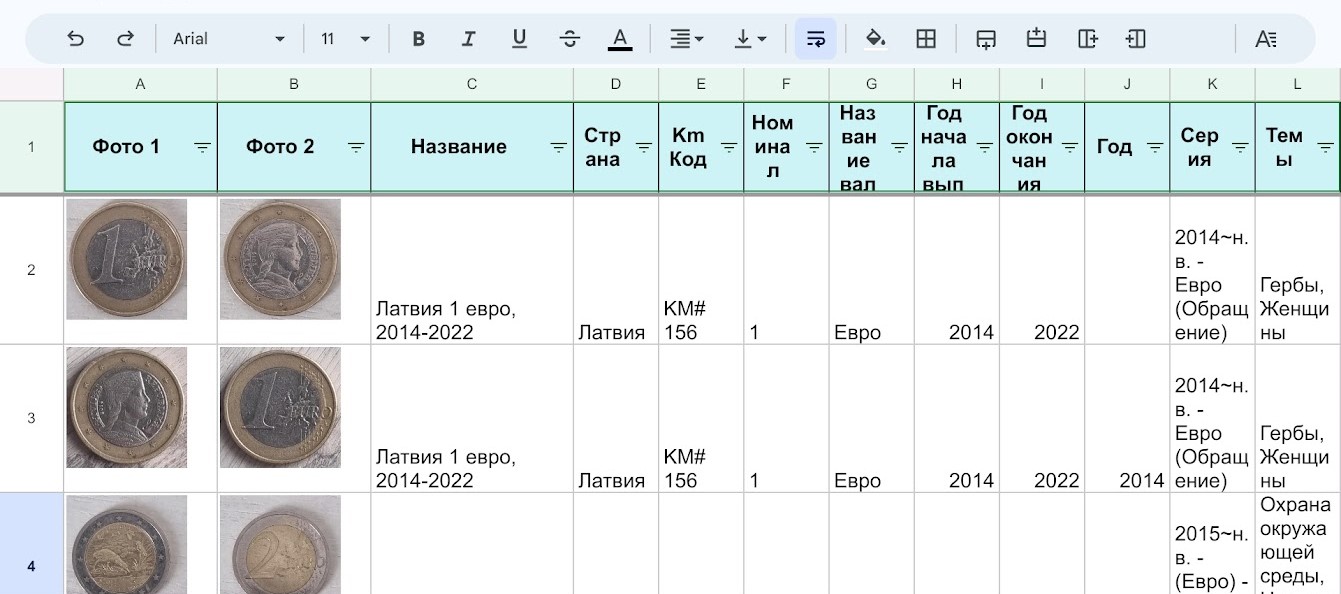 - Информация по распределения монет/банкнот по годам